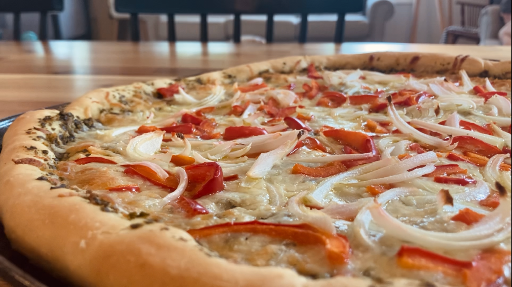 First make sure your yeast is alive by mixing 1 tablespoon each of yeast and honey with 1/4 cup of warm water – set this aside for 5 minutes. While yeast is activating mix together oil, remaining honey, water, and salt. Next stir in 3 cups of flour. Once flour is hydrated, add in the yeast mixture and remaining flour. Knead by hand or in a stand mixture with a dough hook for 5 minutes or until the dough pulls away from the side of the bowl. Allow dough to rise for one hour, covered in a warm spot. Press down risen dough and use for pizza crusts or place in refrigerator for up to 48hrs to ferment. When baking, form crusts, add toppings, and bake at 375 for 20 minutes or until bottom and edges are browned and cheese is melted.
